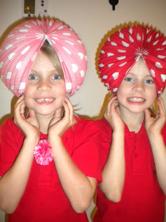 oh dear your twinnies are cracking me up with the lanterns on their heads and little rory with his pom pom's and is he working on a 6 pack?